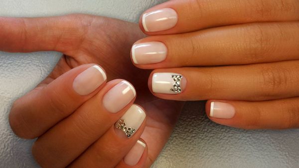 Jaket Perancis yang indah dan manikur bulan dalam warna-warna pastel, dihiasi dengan reka bentuk setem, patung dan canggih, akan merayu kepada seorang wanita romantis dan manis.
