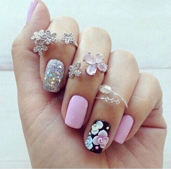 Menggunakan perhiasannya, anda boleh memilih salah satu jari dan membuat reka bentuk kuku cantik.