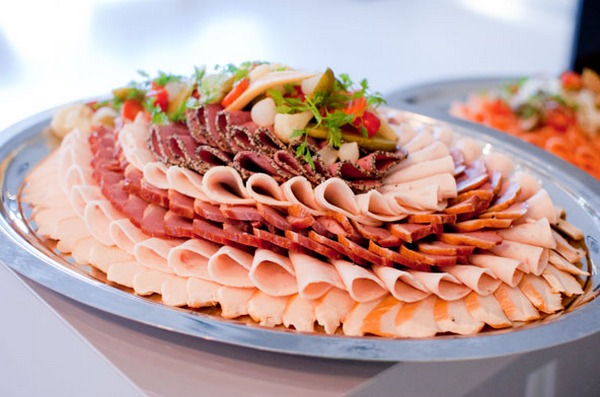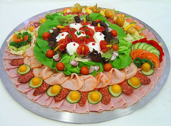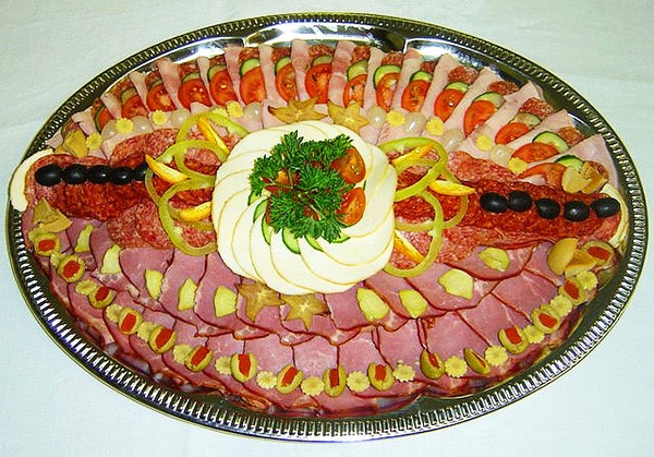 Berfikir melalui menu, ia patut termasuk potongan daging dan sosis perayaan, keping plat keju dan keju, kudapan ikan, sayur-sayuran dan buah-buahan yang harus hadir di meja perayaan.