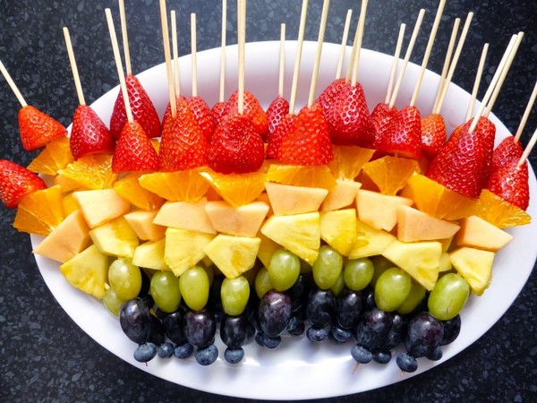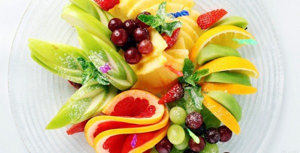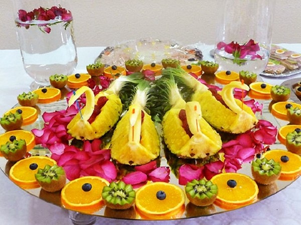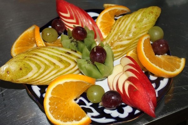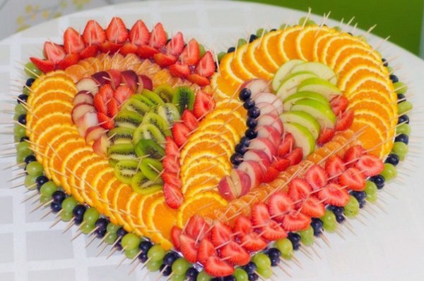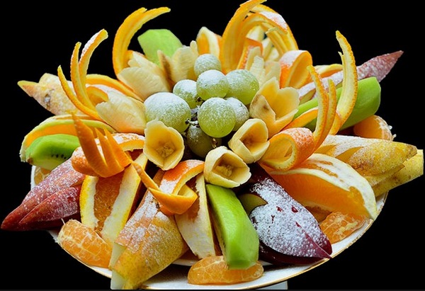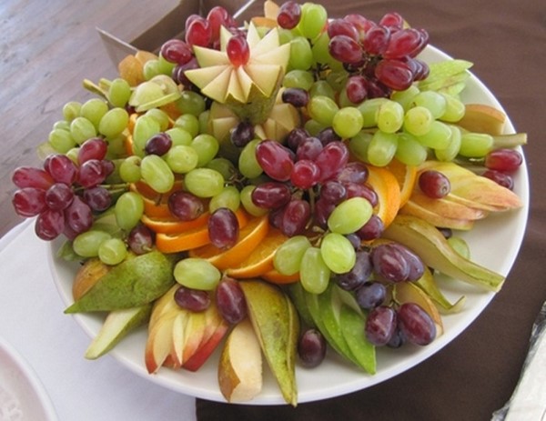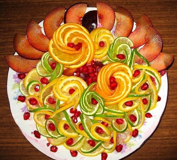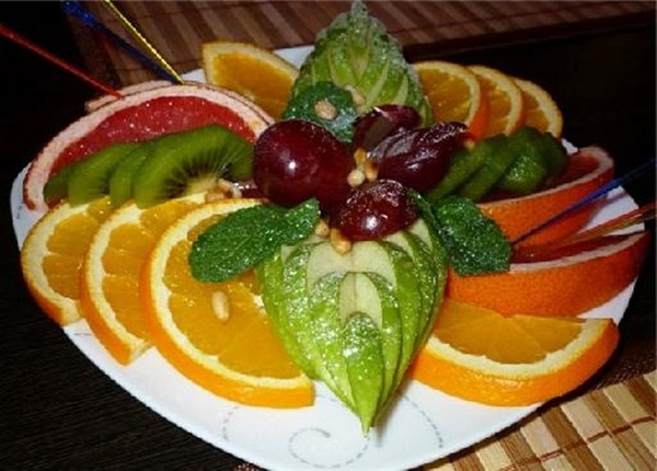 Rempah-rempah buah-buahan perayaan termasuk pelbagai buah-buahan yang anda suka atau tetamu, tetapi yang terbaik adalah memilih yang bermusim. Gunakan kombinasi buah-buahan berwarna-warni dalam penghirisan, mengatur saiz dan bentuk yang berbeza, meletakkan - memutar atau mengikat dengan lidi. Dan jangan lupa tentang ukiran buah, bakul buah-buahan dan bunga-bunga buah, yang akan ditangkap oleh tetamu anda!
