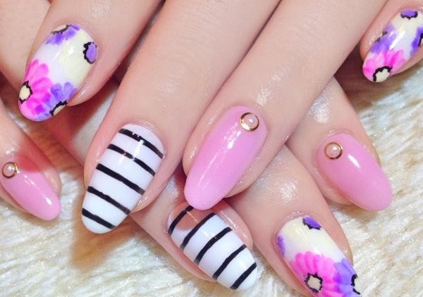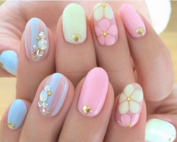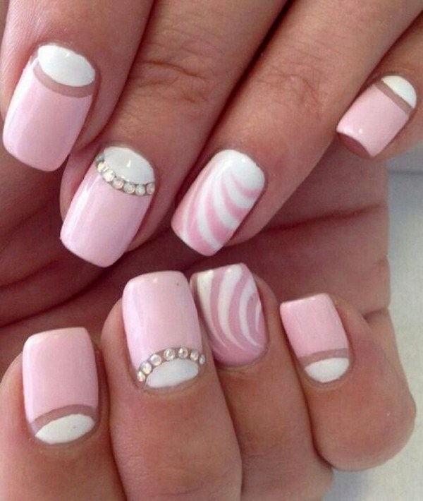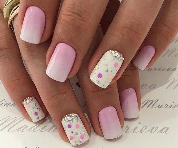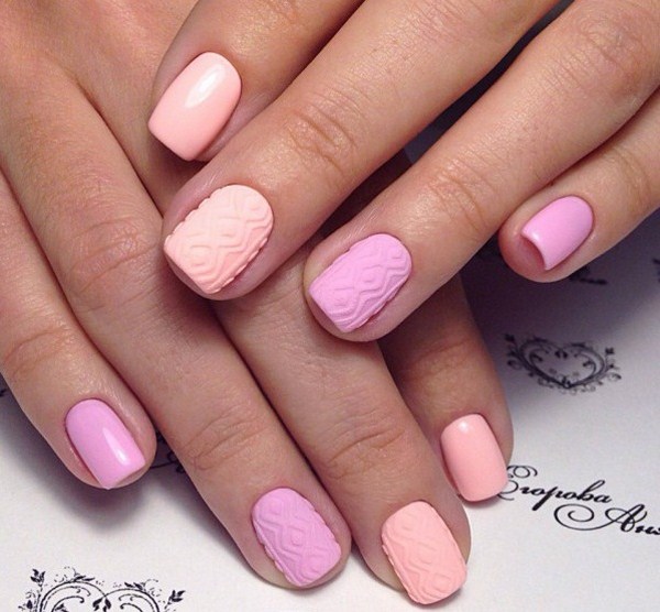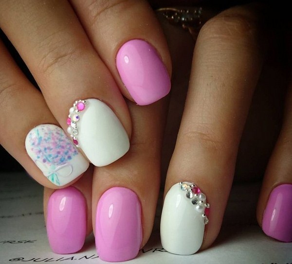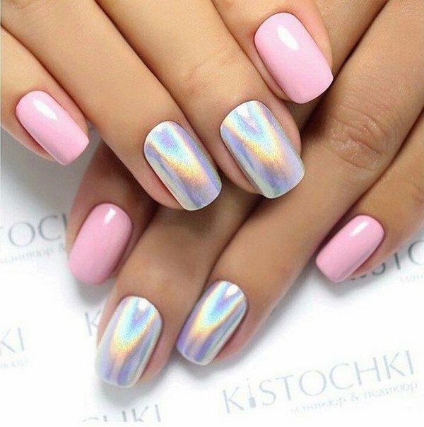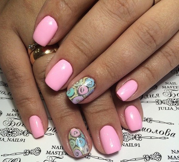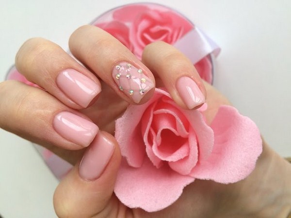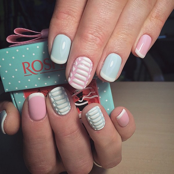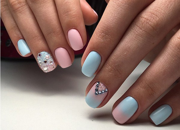 Juga, manicure merah jambu yang lembut adalah pilihan terbaik untuk musim panas yang panas, apabila seseorang mahu cahaya dan kesegaran. Anda boleh melengkapkan dan mempelbagaikan manicure merah jambu pucat dengan warna pastel - turquoise, pic dan biru,