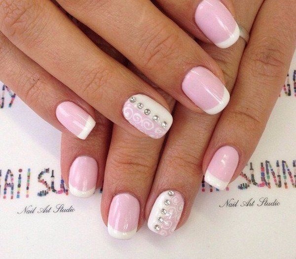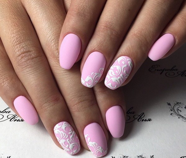 Untuk rupa yang lembut dan manis, pilihan terbaik akan menjadi manikur merah jambu yang bergaya dalam warna telanjang dan warna pastel, serta varnis merah jambu, yang sama dengan warna nada putih atau daging.