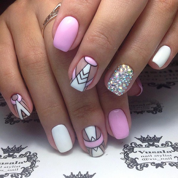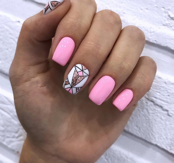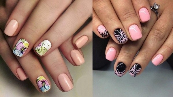 Manikur merah jambu yang paling bergaya 2025-2026 boleh dibuat dengan mudah menggunakan lukisan dan reka bentuk asal pada kuku. Lukisan dan reka bentuk kuku boleh menjadi minimalis - titik, jalur, cawangan nipis, angka.