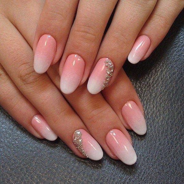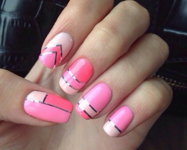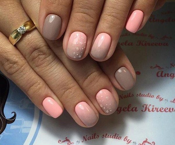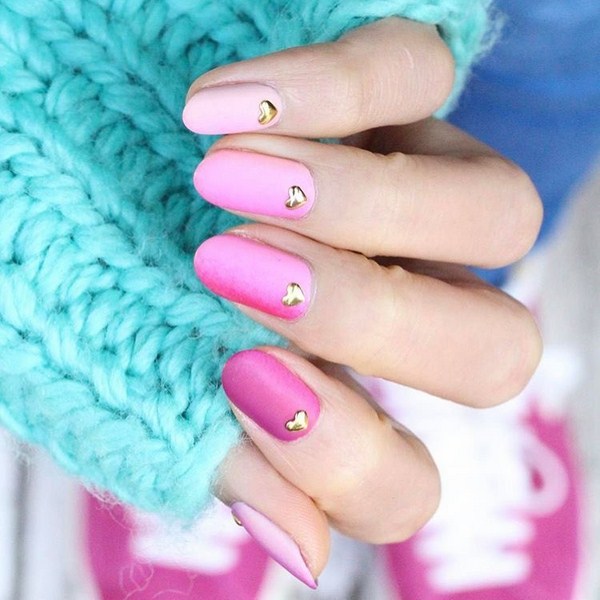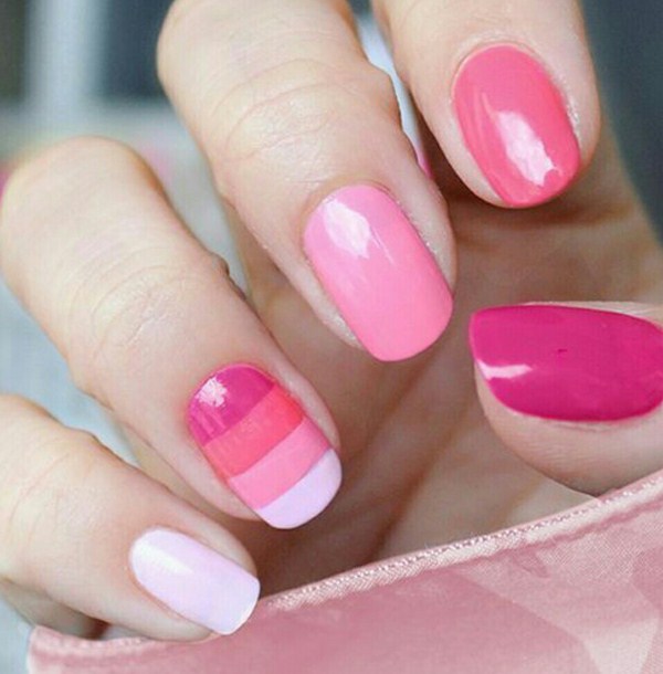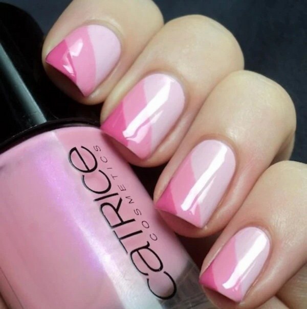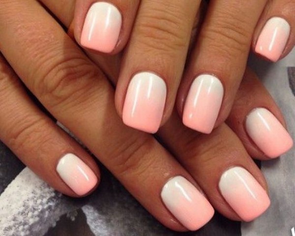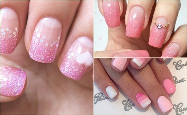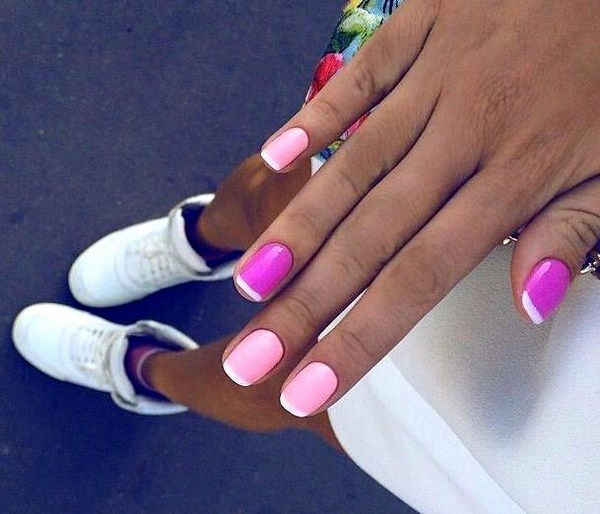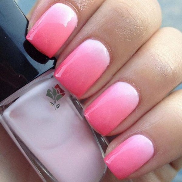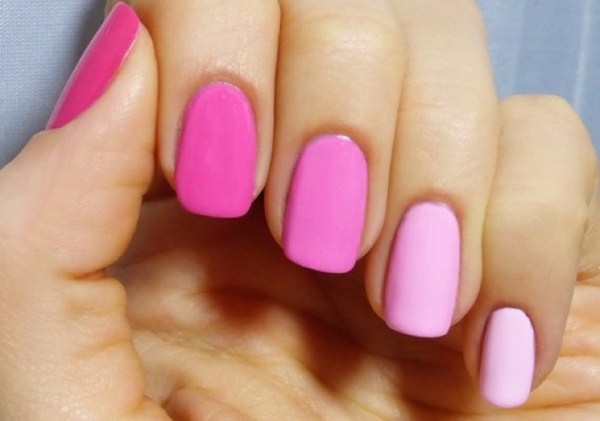 Satu lagi jenis manicure merah jambu yang halus akan menjadi ombre merah jambu, kecerunan yang boleh menjadi warna kelabu, lebih tepu warna merah jambu, ungu dan biru tepu.