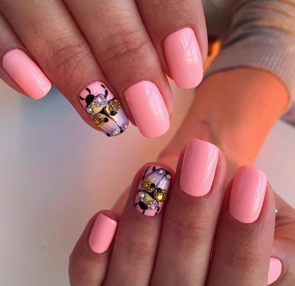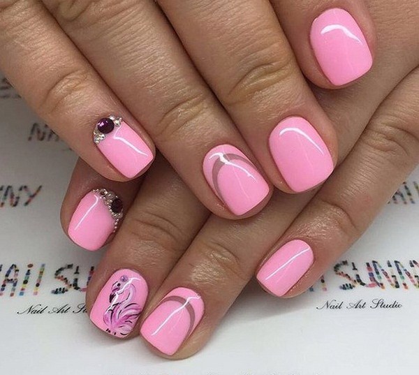 Manikur merah jambu paling kerap dikaitkan dengan pakaian yang halus dan girlish, imej ringan dan santai untuk gadis-gadis comel dan romantis.