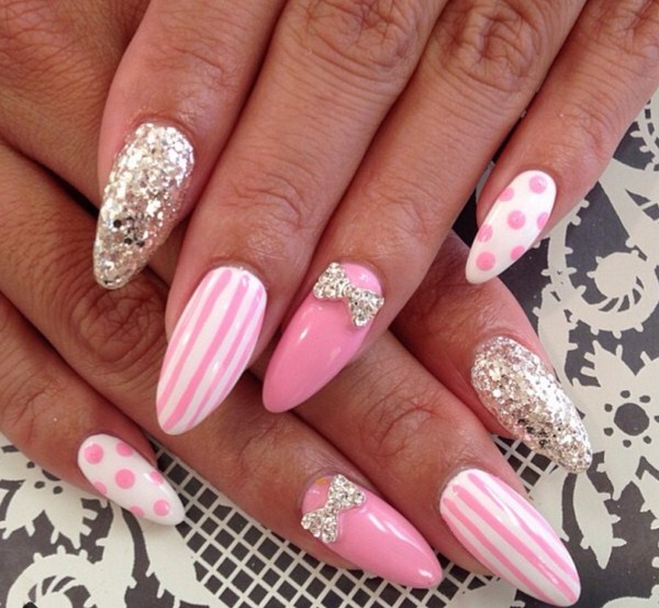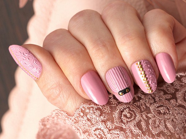 Supaya manicure merah jambu itu tidak kelihatan membosankan, tuan-tuan mencadangkan menggunakan teknik yang berbeza untuk mencipta manicure merah jambu yang berwarna-warni bergaya 2025-2026. Buat manicure merah jambu yang terang menggunakan teknik ombre, patung menggunakan perhiasannya, pelbagai pengilat, dihiasi dengan rhinestones, jalur, dan sebagainya.