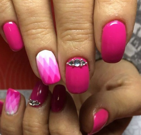 Manikur merah jambu bergaya diwakili oleh idea-idea yang terang dan tidak biasa yang tidak akan meninggalkan mana-mana fashionista acuh tak acuh. Untuk mencipta manicure yang cerah dalam warna merah jambu, ia perlu menggunakan pemoles gel berwarna raspberry, fuchsia, cyclamen dan sejenisnya.