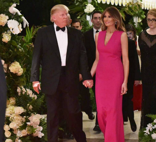 Penampilan yang mewah dalam setiap pengertian perkataan: make up yang indah, aksesori dan pakaian yang indah oleh Melania Trump tanpa keterlaluan membuat keindahan ikon gaya moden.