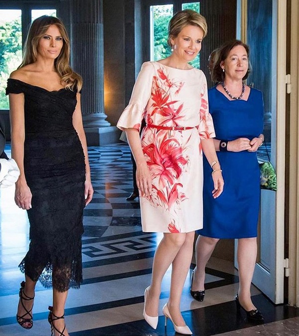 Wanita pertama tidak takut untuk tampil dalam pakaian fuchsia yang cerah dan dalam pakaian dengan cetakan bunga, serta wanita pertama lebih suka pakaian klasik hitam, putih dan beige.