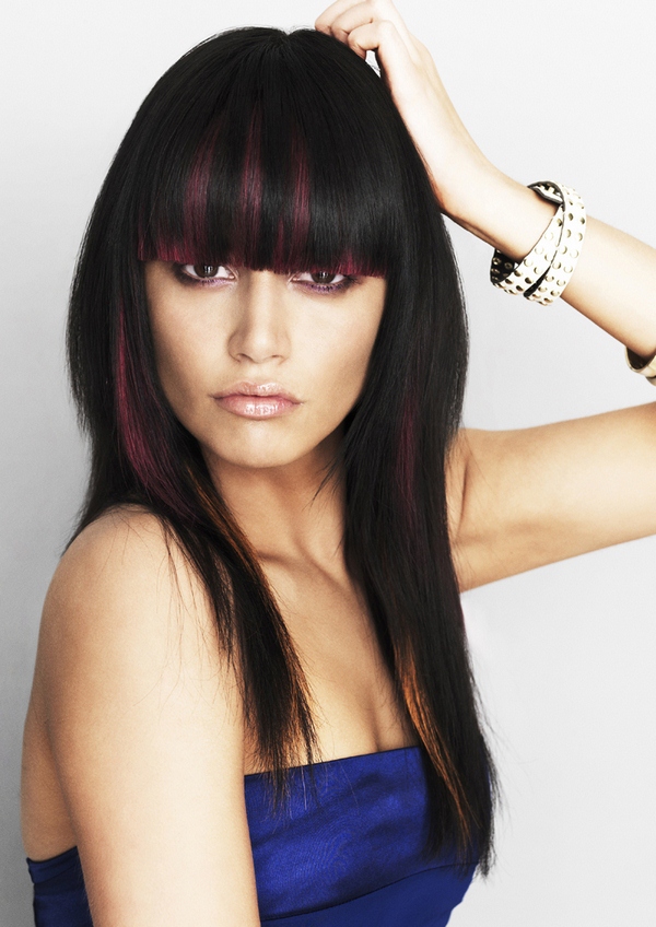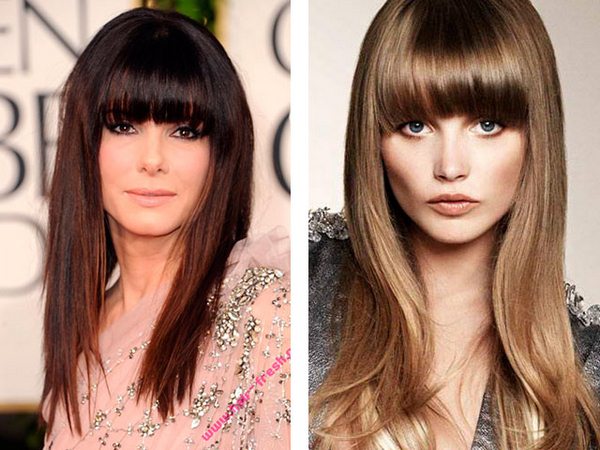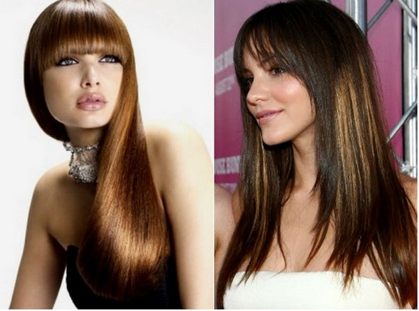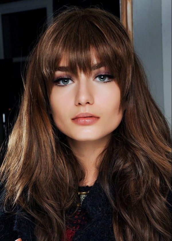 Bangs pada rambut panjang boleh diletakkan sama ada di sisi atau lurus, tetapi trend adalah bangs tebal dengan potongan dan tepi yang tidak sekata yang sangat berkesan dan kelihatan cantik.