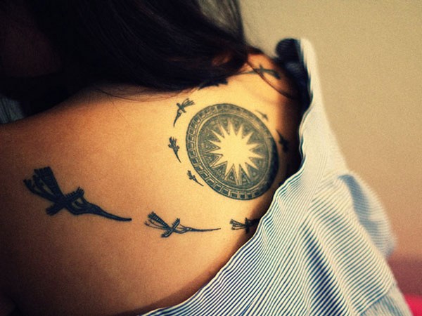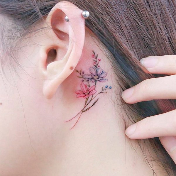 Tato cantik dengan bunga di tulang selangka, bahu, leher atau di belakang telinga adalah sangat feminin dan elegan, menghiasi badan dengan lembut dan memberi kewanitaan dan romantik kepada gadis-gadis.