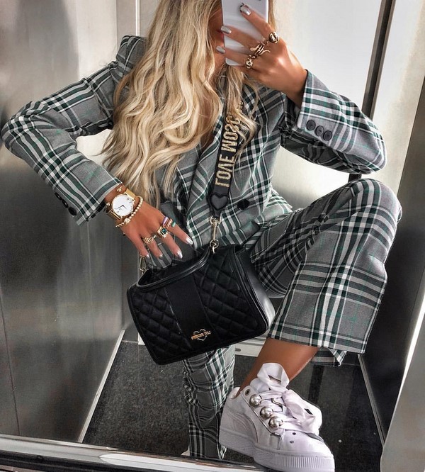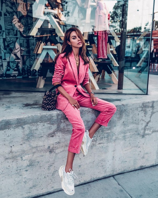 Penggabungan gaya yang berbeza adalah begitu hebat hari ini bahawa adalah mustahil untuk menarik garis jelas antara gaya perniagaan dan sukan, kerana banyak tracksuits mempunyai elemen hiasan yang ketat dan digabungkan dengan kasut bertumit tinggi. Manakala rangkaian perniagaan ditawarkan dengan jalur dan kasut sukan atau kasut kasar. Dalam hal ini, kami menawarkan anda gaya yang lebih sporty dengan seluar seluar yang bergaya dengan seluar panjang dan selendang ringan sebagai bahagian atas, yang ideal untuk hujung minggu dan berjalan kaki.